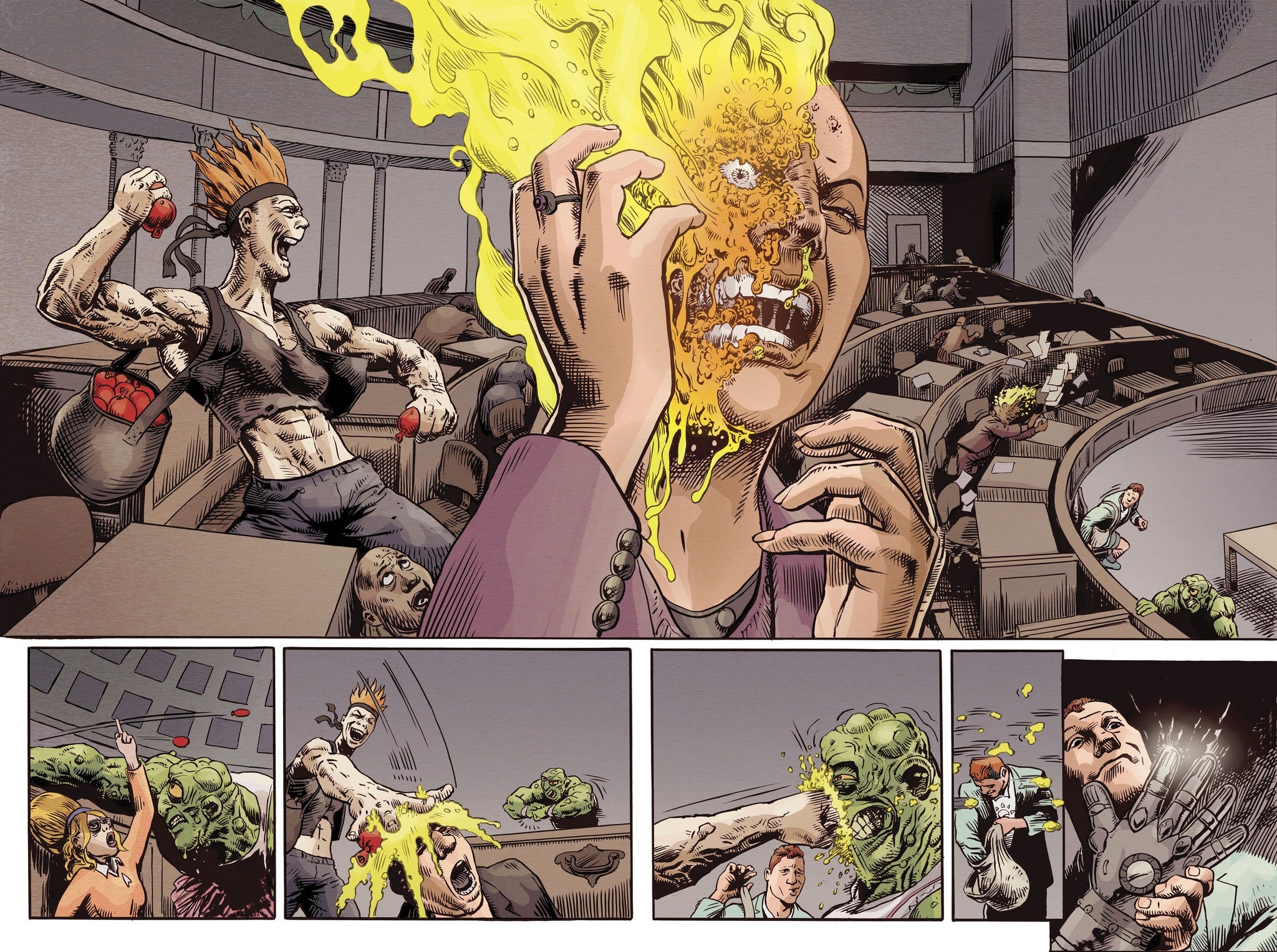 I’m blessed to be working with Fred Harper on this, who is turning in career-best stunners. Here are a couple unlettered spreads—Fred Spreads, we call ‘em.
