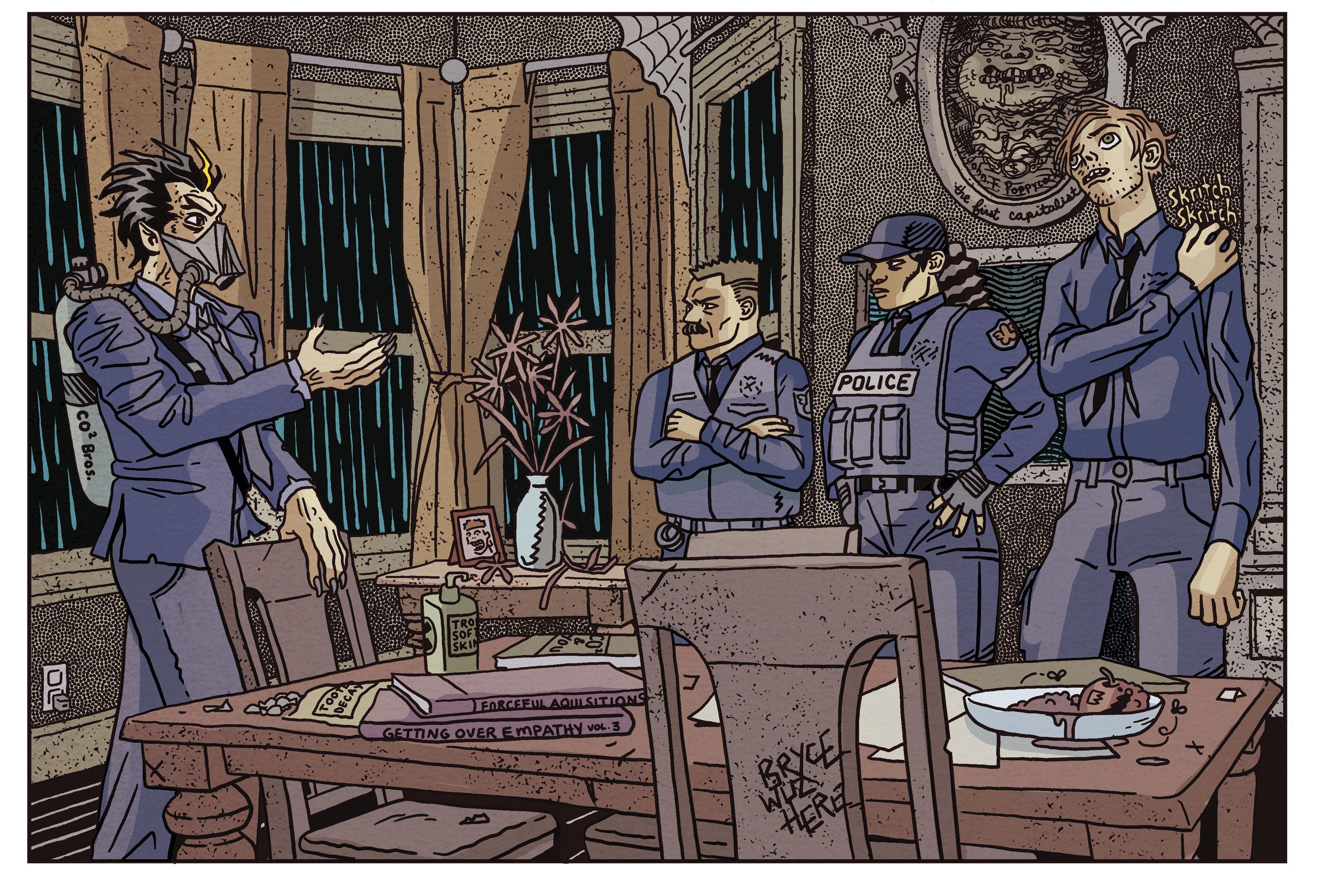 We have our big bad wolf in Junkyard, but it’s the three little pigs who will be doing the huffing and puffing. They are disgraced New Jersey cops, mutated by the alien Mr. K and enlisted to forcibly evict the Crusaders from their home. Not by the hairs of their chinny chin chin!